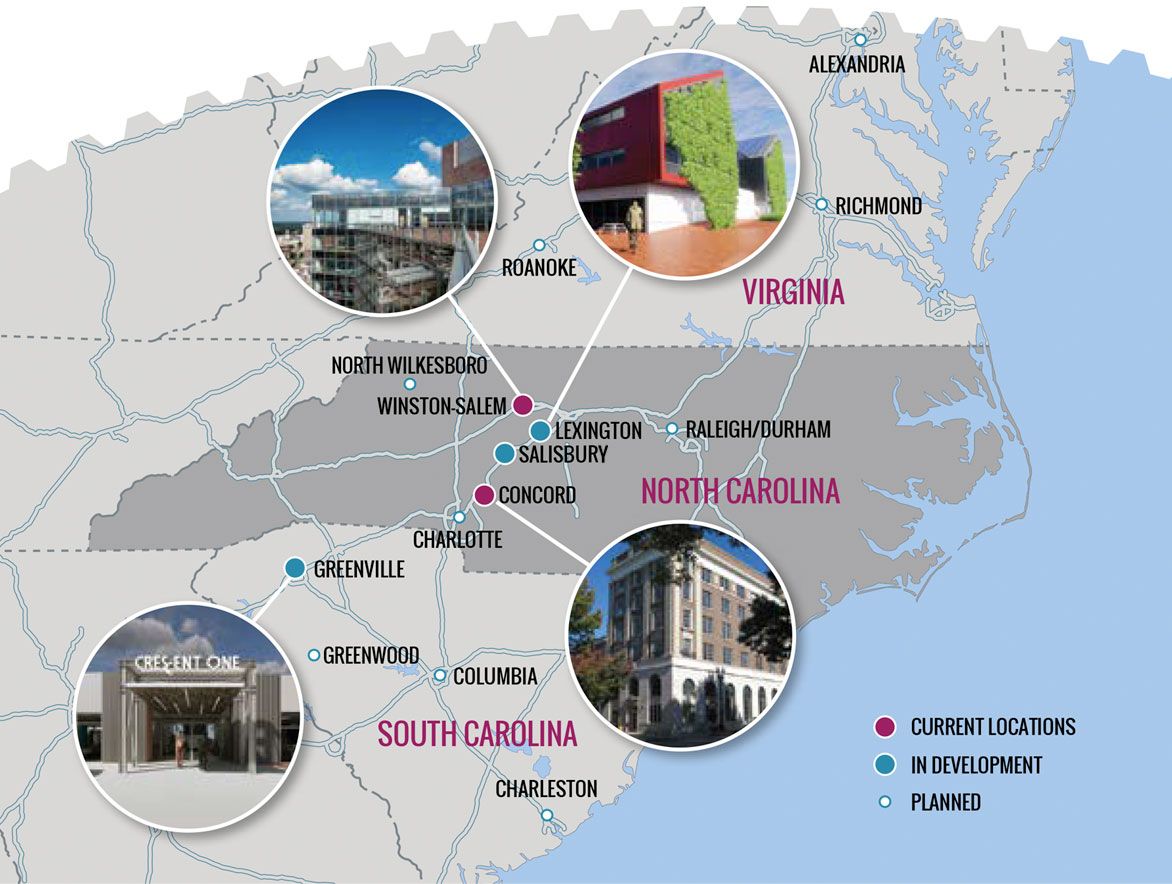 The Cabarrus Center powered by Flywheel is located in the heart of downtown Concord, NC.