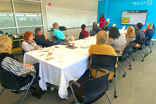 Tech Slam N’ Eggs is hosted once a month, rotating in-person sessions among Flywheel’s three locations of Winston-Salem, NC; Concord, NC; and Greenville, SC.